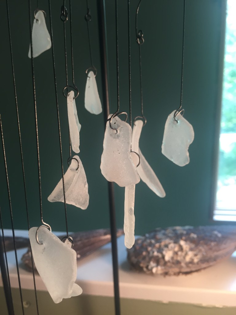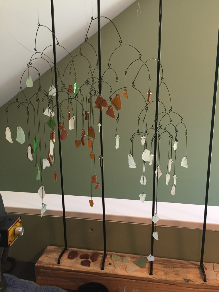 Walking the beach is one of my favorite hobbies. I pick up lots of treasures and make things from them. These mobiles have 20 pieces of Lake Huron glass found by me! Green, brown or white. $50 each.