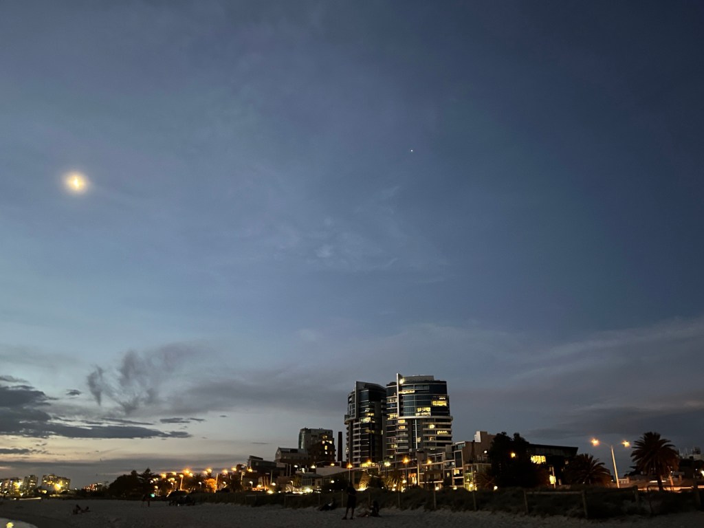 Life Australia Day 8 – sunset and cruise ship Date: January 16, 2024Author: Susan Briggs 0 Comments Port Melbourne beach. Port Melbourne Share this: Click to share on X (Opens in new window) X Click to share on Facebook (Opens in new window) Facebook Like Loading...