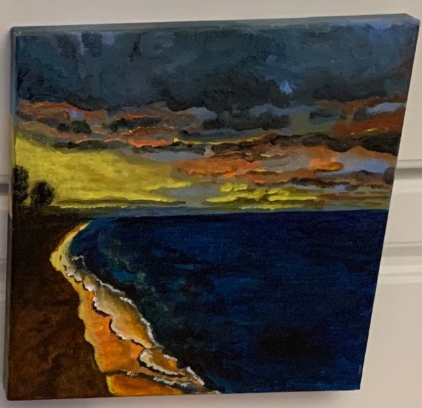 Beaches Crescent Beach Black 20″ x 20″ Acrylic $125 Peek-a-boo Sunset Lake Huron (sold), Sunset, Ozone 5″x 5″ Acrylic $40 each Storm 5″ x 5″ Acrylic (sold) Crescent Beach Purple 12″ x 12″ Acrylic $100 Crescent Beach Yellow 12″ x 12″ Acrylic (sold) Crescent Beach Orange 20″x 20″ Acrylic (sold) Like Loading...